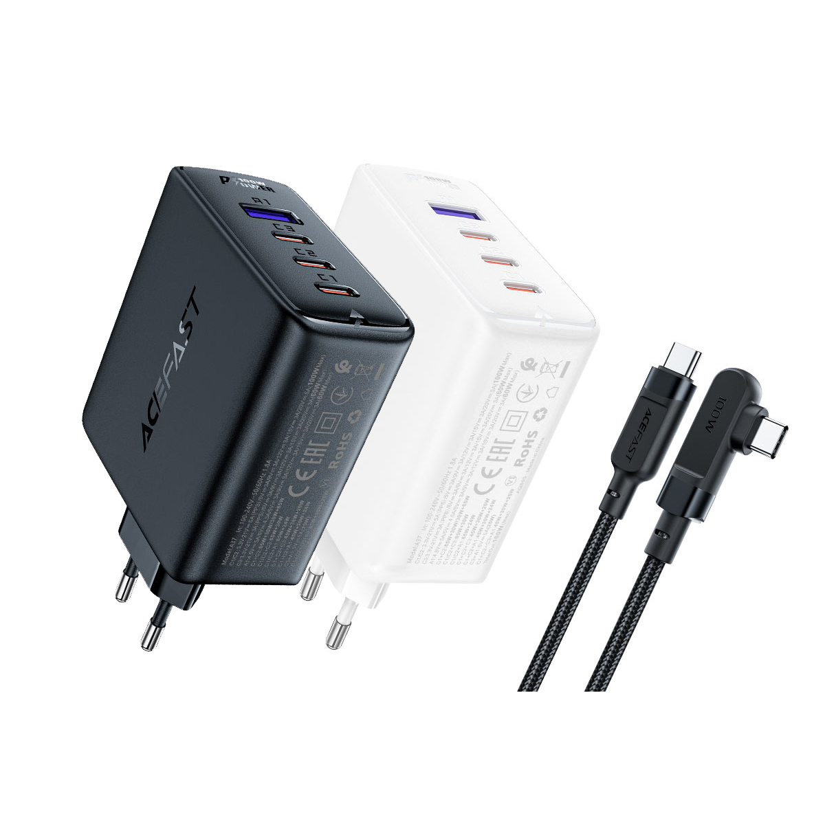 Адаптер ACEFAST [A37] GaN 4-Port Fast Charger 3xUSB-C+USB 100W [with cable USB-C]