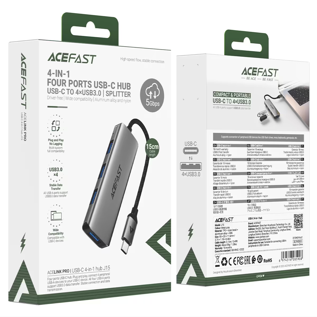 Адаптер ACEFAST [J15] Docking Station 4in1 USB-C to 3xUSB3.0