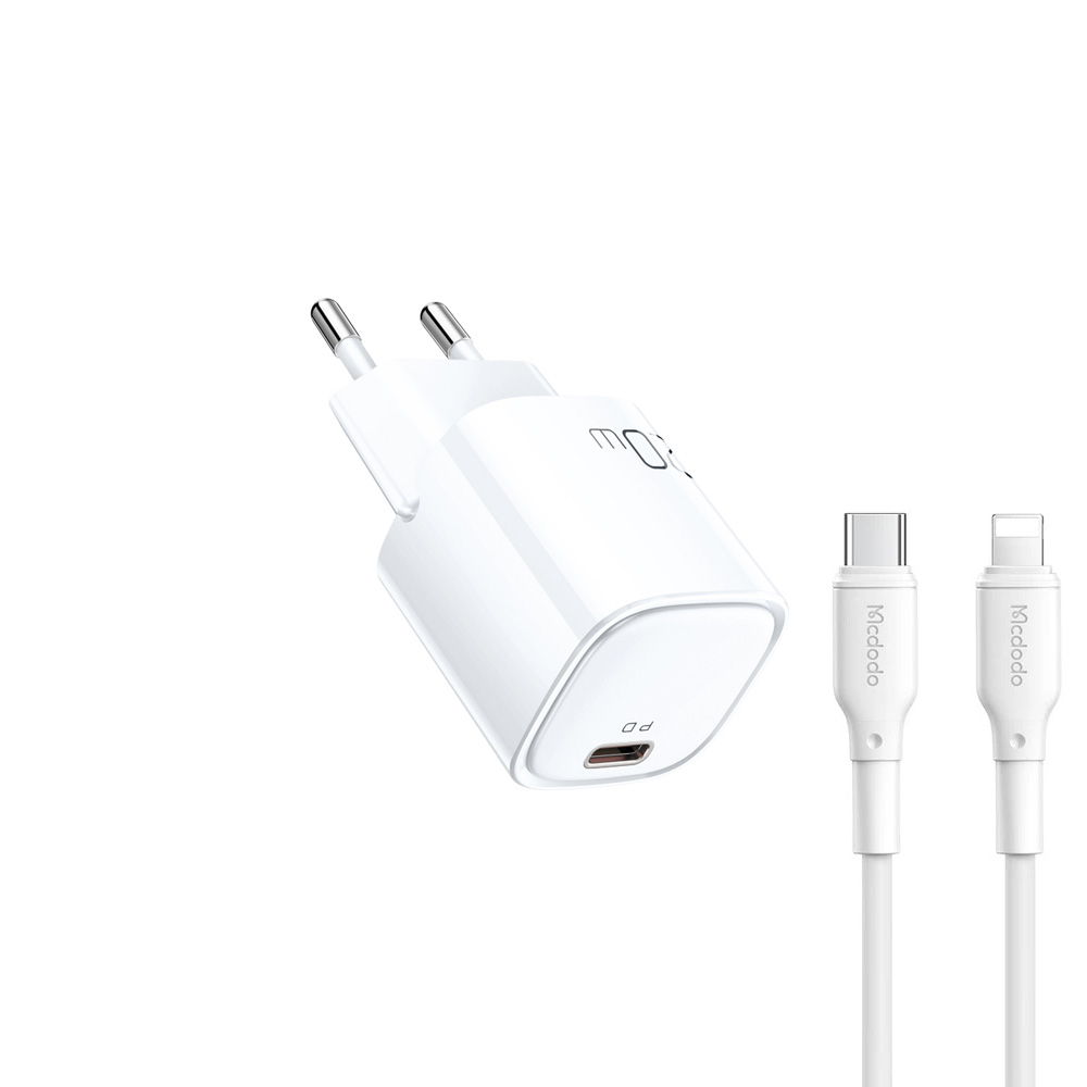 Зарядний пристрій Mcdodo CH-4690 виконаний у компактному корпусі з міцного полікарбонату (PC), що забезпечує безпеку та довговічність. З розмірами 32.4 × 35.7 × 72.1 мм він зручний для використання вдома чи в дорозі. Чорний колір і мінімалістичний дизайн додають елегантності, а EU-вилка гарантує сумісність із європейськими розетками. У комплекті поставляється кабель Type-C to Lightning.